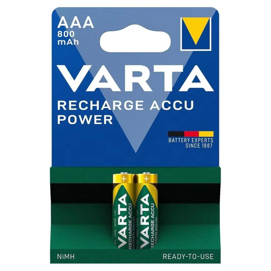 Varta Şarj Edilebilir Accu AAA 800 mAh piller, "Ready To Use" (Kullanıma Hazır) teknolojisine sahip yüksek kapasiteli NiMH hücrelerdir. Bu piller önceden şarj edilmiş olarak gelir ve paketten çıkar çıkmaz kullanılabilir. 12 aylık depolama sonrasında kapasitelerinin %75'ini koruyan çok düşük bir kendi kendine deşarj oranına sahiptirler.